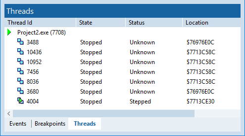 Однако важной частью информации здесь является то, что отладчик просматривает не тот поток с точки зрения того, что нас интересует Ctrl+Alt+T. at является последним в списке.